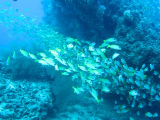 黄色いヨスジフエダイの群れや小さなものをまったりのんびり。コブシメも発見です。